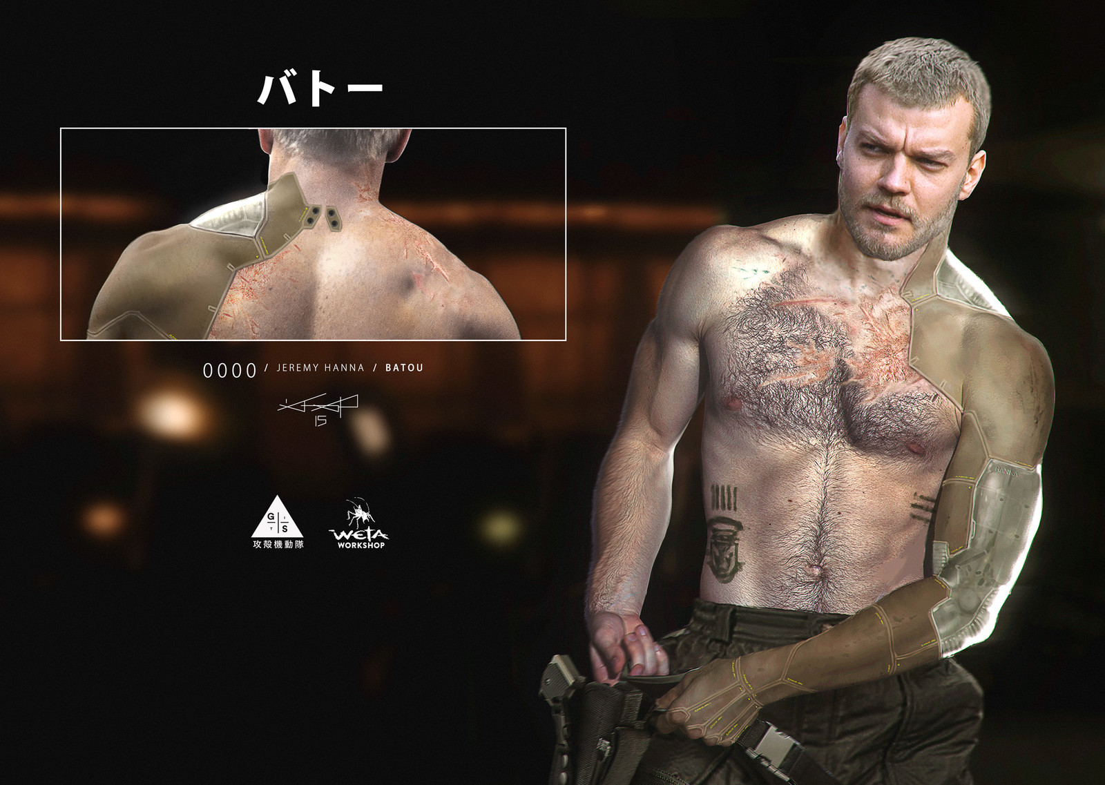 This design was a hint at Batou's military past. A synthetic arm grafted to his body following some dramatic injury in the line of duty.